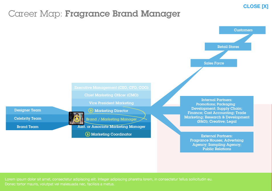 I also work with designers/celebrities to create fragrance concepts; with perfumers to develop the scent (juice); with packaging designers and engineers to finalize the bottle and carton; and with the salesforcce to develop the presentation to get retailers to carry the brand. I also manage the inventory, costs and budget; monitor and report sales results; constantly check out the competition; and develop promotional programs like gift sets, sampling, and free gifts with purchase.